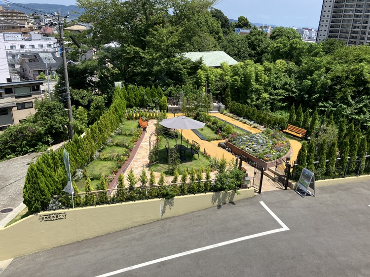 神奈川県小田原市に位置する、創建600年以上の歴史を持つ後北条家ゆかりの願修寺境内にある樹木葬庭園です。小田原駅から徒歩5分のロケーションで、利便性が高く、ご家族のご訪問もスムーズです。閑静な住宅街にありながら、四季折々の草花が彩り、箱根連山の山並みを望み、相模湾に面した自然豊かな、心安らぐ空間です。